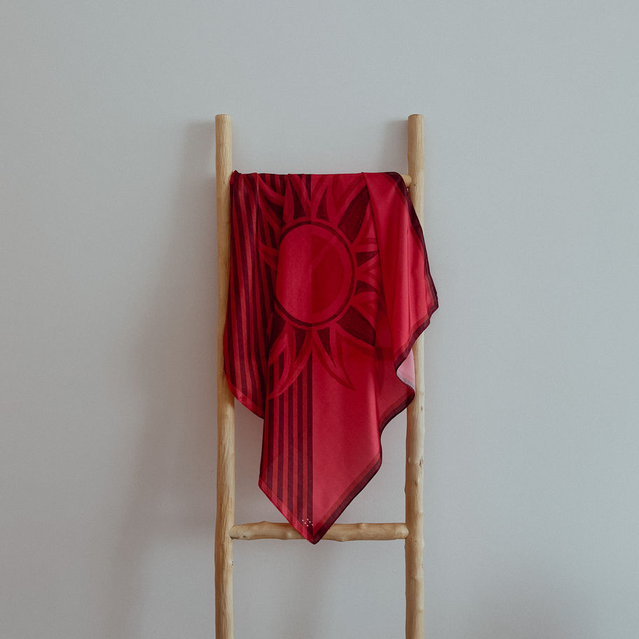 O lenço possui toque sedoso que envolve a pele com leveza e conforto. Seu brilho sutil acrescenta sofisticação, enquanto as diferentes amarrações permitem destacar o que você deseja expressar em cada momento. A peça apresenta movimentos distintos em cada lado, com uma face listrada e outra mais lisa, possibilitando escolher qual intensidade visual ganhará destaque conforme a forma de amarrar.